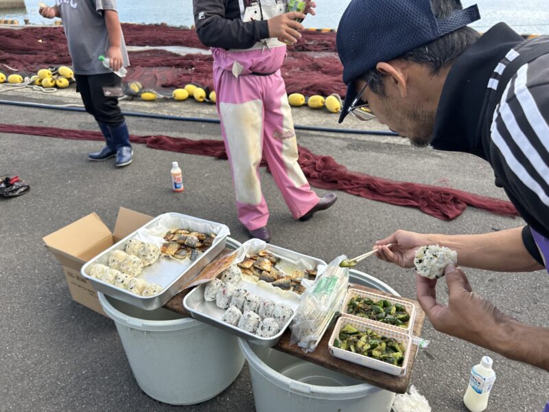 また、月休み前には少し網仕事をしましたが網船の料理長が朝昼と食事を作ってくれてみんなで食べました!